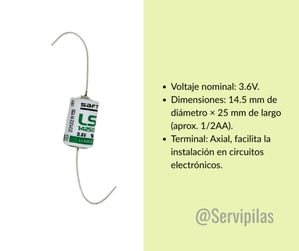 PILA LS14250 SAFT 1/2AA 3.6V CON AXIAL