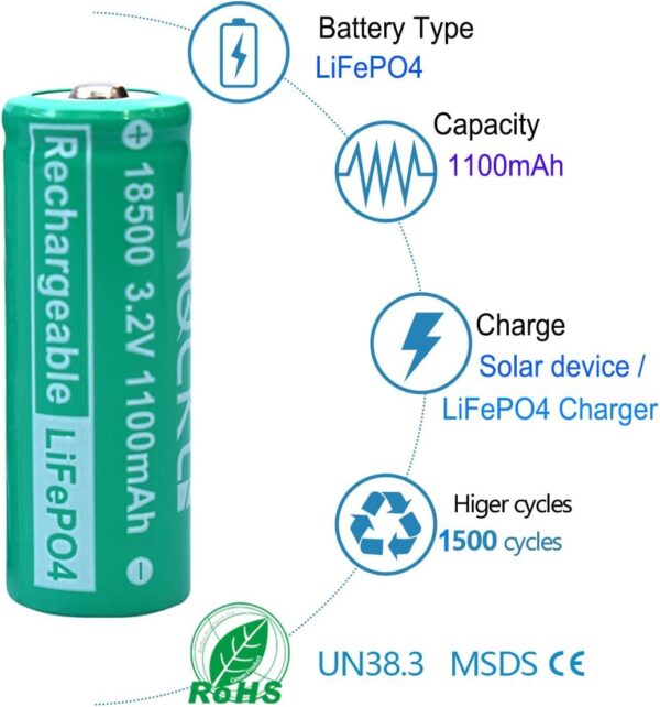 La Batería 18500 LiFePO4 3.2V 1100mAh ofrece una solución de energía confiable, segura y de larga duración.